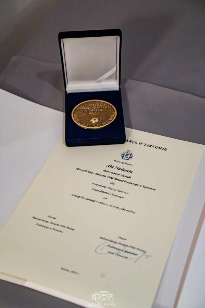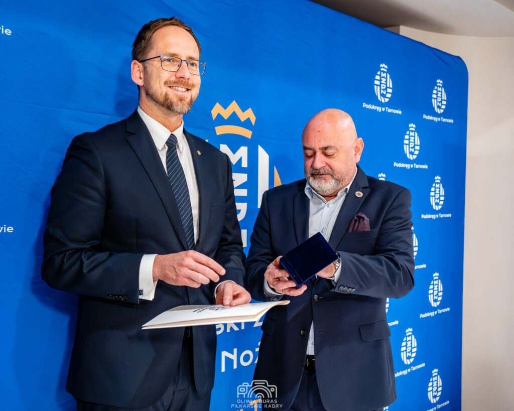 Szczególnym momentem uroczystości było wręczenie przez prezesa MZPN PPN w Tarnowie Artura Główczyka Honorowych Medali Wyróżnienia – jako podziękowanie za nieoceniony wkład w rozwój i promocję piłki nożnej w naszym regionie. Medale trafiły do Prezydenta Miasta Tarnowa Jakuba Kwaśnego oraz Starosty Powiatu Tarnowskiego Jacka Hudymy.